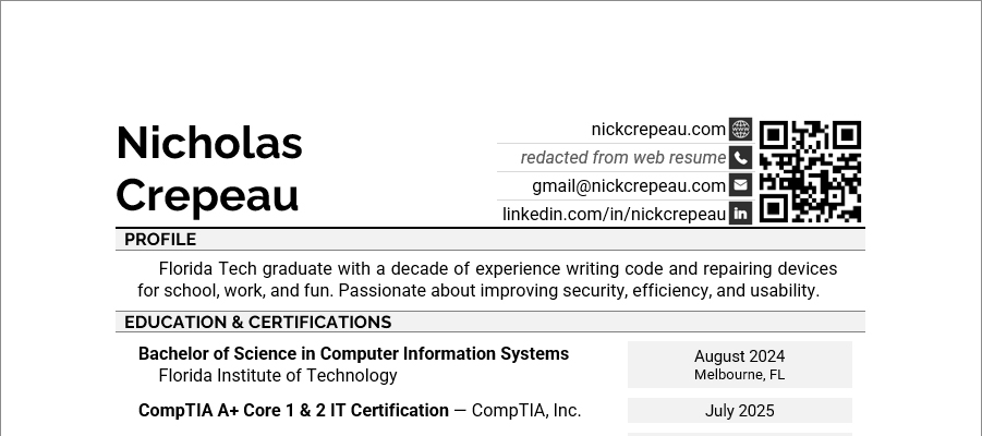 I have over a decade of experience writing code and repairing devices for school, work, and fun. I am also passionate about improving security, efficiency, and user experiences.